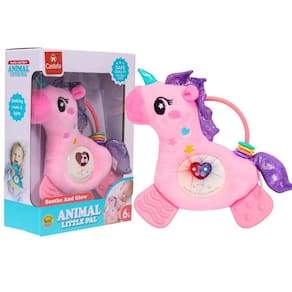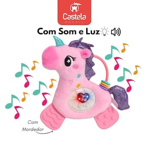 Pelúcia unicórnio com mordedor som e luz - castela Descrição do produto