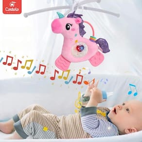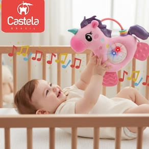 Leve diversão e aconchego para os pequenos com a pelúcia musical unicórnio da castela Desenvolvida especialmente para estimular os sentidos do bebê, ela combina maciez, luzes coloridas, música suave e ainda vem com mordedor seguro, ideal para a fase de dentição.