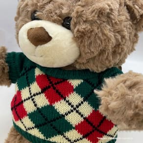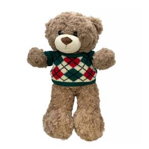 Com o suéter vestido, este urso não é apenas um brinquedo; é um companheiro estiloso, pronto para enfrentar o frio do inverno com muito charme e elegância.
