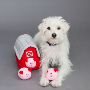 Os porcos vão voar quando seu cãozinho descobrir os adoráveis ??bichinhos da fazenda Bubble Babiez escondidos no Burrow® Pig Barn! Depois que seu cãozinho brincalhão tiver expulsado todos eles, eles vão implorar para você colocá-los de volta lá dentro várias vezes para horas de diversão!
