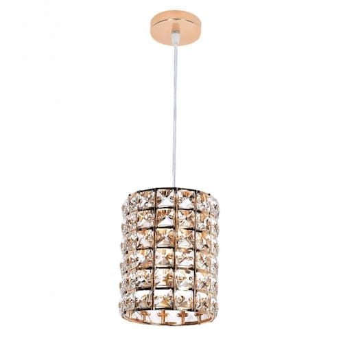 Pendente 09X14X150Cm Metal Dourado e Cristal Transparente 1 Lâmpada E14 Sindora