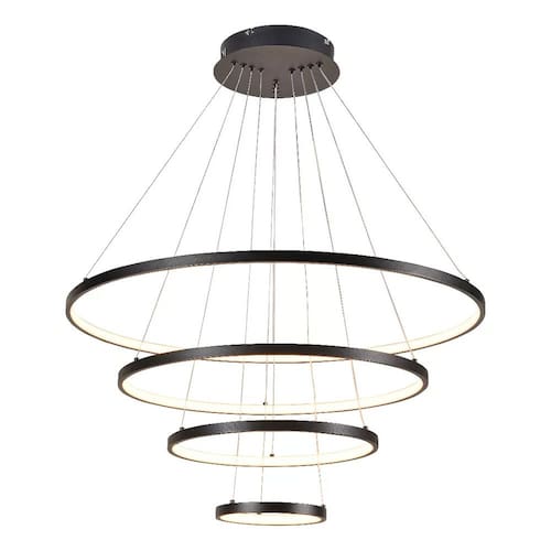 Pendente 4 Anéis Preto Fosco 80cm Led 101W 3000K Bivolt