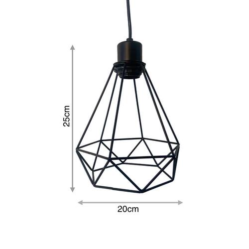 Pendente estilo retrô em formato de diamante modelo médio fabricado e modulado em aço pintado. De fácil instalação e manutenção possui soquete rosca comum e27. Deixa seu ambiente estilo retrô e ao mesmo tempo sofisticado com toque eleganteAplicação: balcão de cozinha, mesa de jantar, quartos e etcEspecificações:Acabamento: pintura fosca eletrostáticaCor: cobre rose ou pretoMaterial: açoCordão do pendente: cabo 2 viasDimensões:Largura: 20cm diâmetro (cada)Altura: 25cm (cada)Canopla base de fixação: 10cmItens inclusos:1x Pendente1x Canopla de fixação1x Soquete E271 Cabos de fixação1x lampada conforme modelo escolhido Marca: DELED