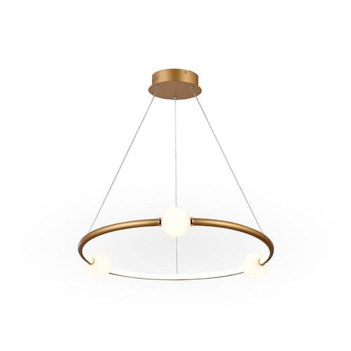 Feito em alumínio de alta qualidade, esse pendente é resistente e durável. Sua base em metal garante uma fixação segura e estável. Além disso, o pendente vem com 3 globos de vidro suspensos em seu círculo, criando uma imagem impressionante.