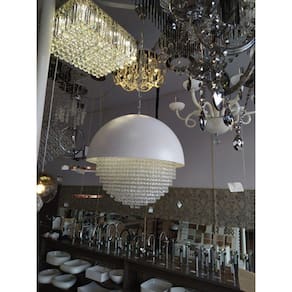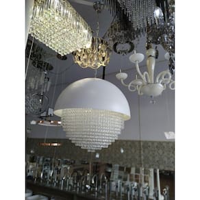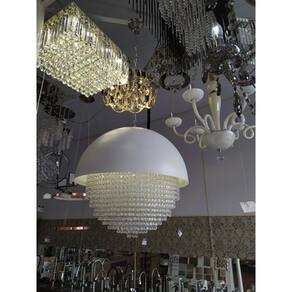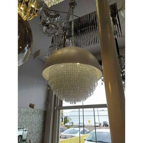 Lustre pendente em alumínio branco com Cristais transparentes Dimensões 60 cm de diâmetro 70 cm de altura mais corrente