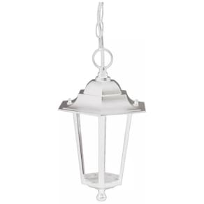 Pluminária Pendente Colonial Taschibra TLF 28 Branco Materiais: Alumínio e vidro. Pintura: Elétrostática á pó poliester. Uso Externo - Resistênte ao tempo Para 01 lâmpada com base E-27 bocal comum . Potência máxima 60W.Br /Lâmpadas compatíveis: LED, eletrônicas fluorescentes compactas ou incandescentes. Lâmpadas não inclusas Dimensão: Cúpula: 195x310mm Corrente: 600mmbr Acende a Luz Iluminação Produtos de Alta Qualidade Bom Atendimento