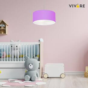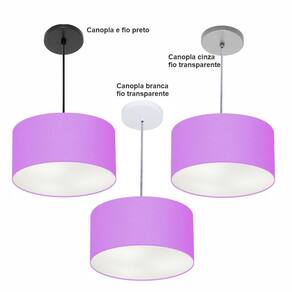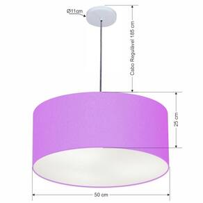 Pendente Cilíndrico Vivare Free Lux Md-4386 Cúpula em Tecido - Cor: Lilás | Cor da Canopla: Canopla branca e fio cristal