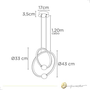 - As medidas deste pendente são 430x330x1200mm, ideal para espaços amplos e com pé direito alto.