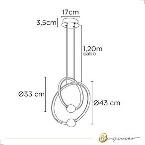 - As medidas deste pendente são 430x330x1200mm, ideal para espaços amplos e com pé direito alto.