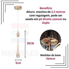 O Pendente Gota Dourado é uma ótima escolha para adicionar um toque de elegância e sofisticação ao seu espaço, seja no lavabo, na sala ou no quarto. Com 7W de potência e tecnologia LED, ele proporciona uma iluminação eficiente e econômica, além de um design moderno que se adapta a diferentes estilos de decoração.