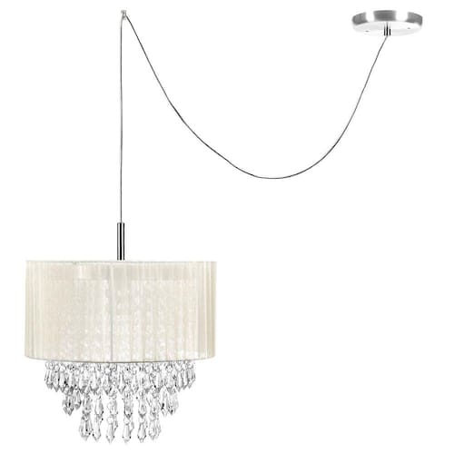 O Pendente de Organza com cristais acrílico ManuCrillic, adiciona luxo e sofisticação a sua decoração, Sua aplicação é muito versátil podendo ser instalada em quartos, sala de jantar, sala de estar, varanda, corredores ou onde a imaginação mandar. Nosso pendente é feito em alumínio polido com cristais de acrílico de alto brilho, causando um lindo efeito luminoso, Uma peça que vai fechar com chave de ouro a decoração do seu ambiente. É indicada somente para uso interno, Utiliza 1 Lâmpadas E-27 de no máximo 20w cada.