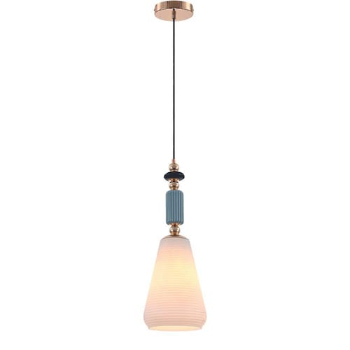 Cód: 13076-PLPendente Dourado Cerâmica Azul e Vidro BrancoSoquete: 1*E27 (Lâmpada não inclusa)Material: Vidro, Metal e CerâmicaCor: Branco, Dourado e AzulDimensões: 43x16cm (AxL)Canopla: Ø12cmComprimento do Cabo: 110cm