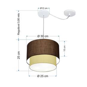 Pendente Duplo Cilíndrico Com Desvio de Centro Vivare Md-4358 Cúpula em Tecido 30x25cm - Bivolt - Cor: Café-algodão-crú | Voltagem: 127/220V