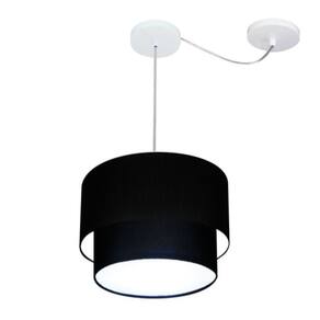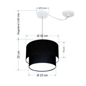 Pendente Duplo Cilíndrico Com Desvio de Centro Vivare Md-4358 Cúpula em Tecido 30x25cm - Bivolt - Cor: Preto | Voltagem: 127/220V