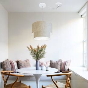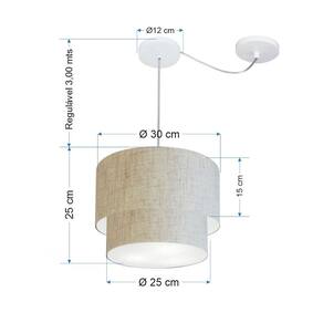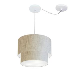 Pendente Duplo Cilíndrico Com Desvio de Centro Vivare Md-4358 Cúpula em Tecido 30x25cm - Bivolt - Cor: Rustico-bege | Voltagem: 127/220V