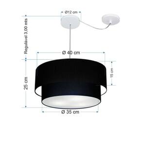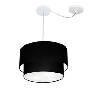Pendente Duplo Cilíndrico Com Desvio de Centro Vivare Md-4364 Cúpula em Tecido 40x35cm - Bivolt - Cor: Preto | Voltagem: 127/220V