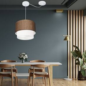 Pendente Duplo Cilíndrico Com Desvio de Centro Vivare Md-4365 Cúpula em Tecido 45x40cm - Bivolt - Cor: Café-branco | Voltagem: 127/220V