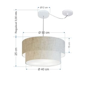 Pendente Duplo Cilíndrico Com Desvio de Centro Vivare Md-4366 Cúpula em Tecido 50x40cm - Bivolt - Cor: Rustico-bege | Voltagem: 127/220V