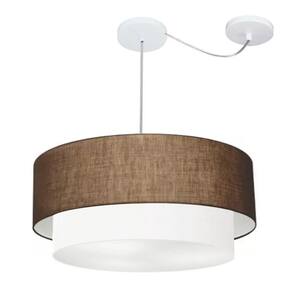 Pendente Duplo Cilíndrico Com Desvio de Centro Vivare Md-4368 Cúpula em Tecido 60x50cm - Bivolt - Cor: Café-branco | Voltagem: 127/220V