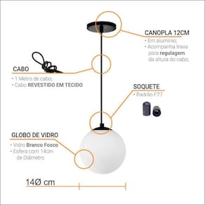 Pendente Globo Esfera De Vidro âmbar 14cm - Ouro Inspirado no Design Vintage o pendente Globo transmite uma decoração sofisticada e dá um toque divertido ao espaço. Seu design minimalista com esfera de vidro tira qualquer sala da . Uma peça diferenciada e muito elegante que fará toda a diferença no seu ambiente. Ideal para iluminações de centro de mesa, balcões, mesa de jogos entre outros. Descrição Técnica: - Modelo: GLOBO 14cm - Acabamento do Vidro: ÂMBAR - Acabamento da Base: COR OURO - Quantidade de soquetes: 1 - Material: Vidro e Alumínio - Tamanho do Globo (LxAxP): 14cm x 14cm x 14cm - Cabo Revestido em tecido: 1m (regulável) - Soquete: E27 - Bivolt: Sim - Canopla: Em metal com regulador ****