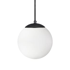 Pendente Globo Esfera De Vidro Branco Fosco 20cm - Preto