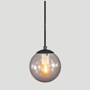 Pendente Globo Esfera De Vidro Fumê 14cm - Preto Inspirado no Design Vintage o pendente Globo transmite uma decoração sofisticada e dá um toque divertido ao espaço. Seu design minimalista com esfera de vidro tira qualquer sala da . Uma peça diferenciada e muito elegante que fará toda a diferença no seu ambiente. Ideal para iluminações de centro de mesa, balcões, mesa de jogos entre outros. Descrição Técnica: - Modelo: GLOBO 14cm - Acabamento do Vidro: FUMÊ - Acabamento da Base: PRETO - Quantidade de soquetes: 1 - Material: Vidro e Alumínio - Tamanho do Globo (LxAxP): 14cm x 14cm x 14cm - Cabo Revestido em tecido: 1m (regulável) - Soquete: E27 - Bivolt: Sim - Canopla: Em metal com regulador ****