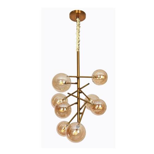 Pendente Jabuticaba Moderno 8 Vidros Âmbar Material: Metal Cores: Bronze Medidas: Diâmetro 70cm Altura Pendente: 2,10 Metros Regulável na altura Corrente: 1,10m Vidros: Cor Âmbar Medidas 13cm e 16cm Lâmpadas: 8 Lâmpadas Modelo G9 Obs. Lâmpadas não inclusa no produto Compatível com Lâmpadas de Led G9 Modelo: Pendente Atributo: Opção de Montagem direto na base sem a corrente Imagem 3 Voltagem: Bivolt Peso: 4 kg : 90 dias contra defeito de fabricação Marca: Não Informado