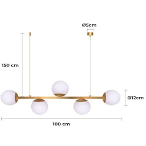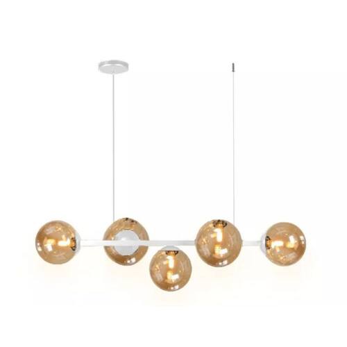 Soquete: 5 x G9 Cor: Branco Dimensões: 100 C x 24 A x 24 L cm Cabo ajustável de até 1,5m Bivolt Material: Alumínio e Vidro Globo: 12cm - Âmbar Marca: Não Informado Ean: 7892859059178