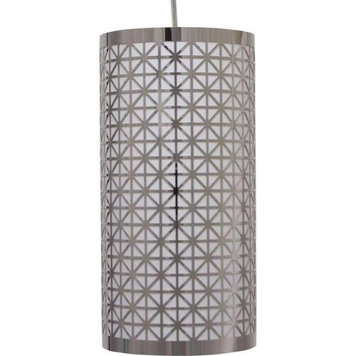 Pendente lustre apolo inox para led diâmetro 15 cm Pendente lustre apolo em inox cromado, com design arrojado e super moderno pelos cortes retos e pelo desenho recortado a laser na lamina de inox, os cristais proporcionam um efeito de brilho que atravessa pelo inox, luminária leve e fácil de instalar é indicada para salas, quartos, corredores, hall de entrada e escritórios. Seus materiais são cristal e metal. Comporta 1 lâmpadas de soquete e14 de led com potência de 7w não inclusas . Pendente apolo redondo cromado com cúpula em inox recortado a laser , pvc interno branco. 1x led-e14 não incluso. Produto montado. Medidas: l 15 cm - p 15 cm - h 28 cm. Bivolt x005fx000d