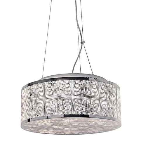 Pendente lustre apolo inox redondo para led diâmetro 60 cm Pendente lustre apolo em inox cromado, com design arrojado e super moderno pelos cortes retos e pelo desenho recortado a laser na lamina de inox, dentro possui uma película de pvc brilhante que proporciona um efeito claro e aconchegante, luminária leve e fácil de instalar é indicada para salas, quartos, corredores, hall de entrada e escritórios. Seus materiais são pvc e metal. Comporta 5 lâmpadas de soquete e27 de led com potência de 20w não inclusas . Pendente apolo cromado com cúpula de inox recortado a laser e película de pvc interna brilhante. Utiliza 05x led-e27. Não acompanha lâmpadas. Produto montado. Medidas: l 60 - p 60 - a 15 cm. Bivolt. Marca: Não Informado