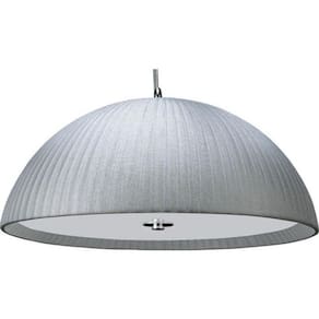 Pendente lustre arges tecido prata para led 40 cm Pendente lustre arges com design arrojado e contemporâneo faz com que seja indicado para compor ambientes internos. Ideal para dormitório, sala de estar, escada, sala de jantar e hall de entrada. Seus materiais são em metal, acrílico, tecido e vidro. Comporta 3 lâmpadas de soquete g9 de led com potência de 7w não inclusas . Pendente arges com cúpula de acrílico transparente, revestido em tecido prata, fechamento inferior em vidro serigrafado branco e acabamentos cromados. 3x led g9 não incluso. Produto montado. Medidas: d 40 cm - h 20 cm. Bivolt.x005fx000d