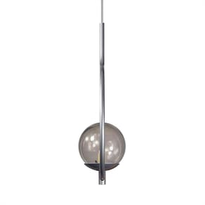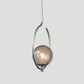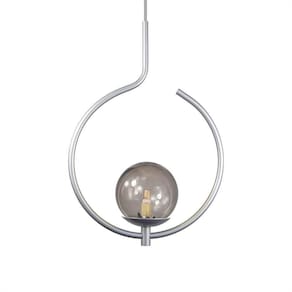 Pendente Lustre On Loop Prata Com Globo De Vidro Fumê Lustre Pendente ON LOOP, design minimalista ao seu estilo. Descrição Técnica: - Modelo: On Loop - Acabamento: Pintura Térmica - Material: Aluminio e vidro - Tamanho (LxA): 25 cm x 36 cm - Cabo: 70 cm(regulável) - Soquete: Padrão G9 - Bivolt: Sim - Canopla: 12 cm