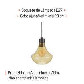 Pendente lustre sala cozinha soho verbena vidro ambar 1xe27 Cor: ambar Voltagem: 110v/220v pendente lustre de vidro âmbar clássico vintage Com design democrático, o pendente verbena é ideal para quem busca elegância e praticidade. Sua forma tradicional e versátil permite compor diferentes tipos de decoração, sendo perfeitos para uso em conjunto acima de bancadas e mesas de jantar. A cúpula de vidro do pendente clássico possui um formato orgânico, que transmite delicadeza e afetividade. Você pode regular a altura do cabo em até 90 centímetros. Os pendentes de vidro em diferentes tamanhos dão movimento ao ambiente e criando novas possibilidades de cenários. A pintura dos acabamentos em alumínio é na cor preta. a iluminação dessa peça, fica por conta de uma lâmpada de soquete e27. Como a lâmpada fica aparente, indicamos o uso de uma lâmpada de filamento, para deixar seu ambiente ainda mais bonito. Dados técnicos: Material: corpo em alumínio e cúpula em vidro Soquete: e27 Peso líquido: 1,05kg Ip: 20 Marca: blumenau iluminação Voltagem: bivolt : 12 meses Lâmpada não inclusa O que é temperatura de cor É a aparência de cor da luz, indica a tonalidade, quanto mais alta a temperatura ela fica mais azulada mais fria . 3.000k - branco quente luz amarela : ambientes aconchegantes, confortáveis e convidativos. Recomendado para quartos e lugares de descanso; 6.500k - branco frio luz branca : ambientes corporativos e que exigem mais atenção. Recomendado para escritórios, salas de aula e bibliotecas. Informações adicionais - demais itens do anúncio são meramente ilustrativos; - 12 meses contra defeitos de fabricação; - temos outros produtos de iluminação. Veja mais opções em mais produtos do vendedor e adicione ao seu carrinho de compras. Principais dúvidas Vocês entregam em todo o país Sim, enviamos para todos os estados. Posso retirar na loja Não, nossa loja é somente on-line. Posso devolver o produto Sim, o produto pode ser devolvido em até 07 sete dias desde que não tenha sinais de uso e esteja na sua embalagem , sem e em perfeito funcionamento. Aqui tem o carinho que a sua casa merece Marca: Não Informado