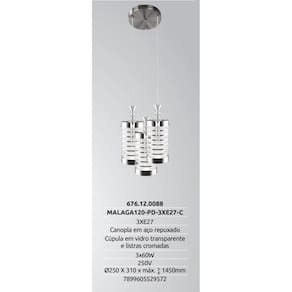 Produzida em alumínio escovado e com cúpulas em vidro jateado transparente, materiais nobres, agregam maior qualidade e durabilidade ao produto. Seus detalhes cromados dão o toque final à sofisticação do produto, tornando-o a melhor opção à decoração de qualquer ambiente.