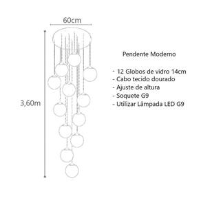 O produto inclui 1 pendente dourado e 12 globos de vidro.
