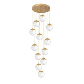 O produto inclui 1 pendente dourado e 12 globos de vidro.