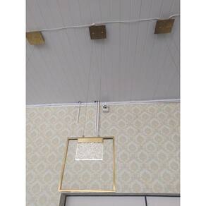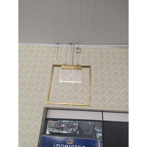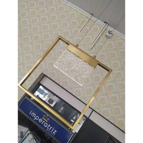 Pendente Quadrado Moderno em metal dourado e cristal com bolhas. Potencia 6w em luz neutra(4000k). Tamanho 30x30 cm. Altura ajustável
