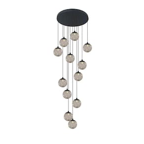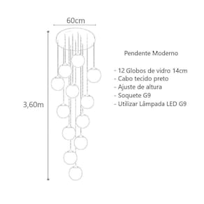 O produto inclui 1 pendente preto fosco e 12 globos de vidro.