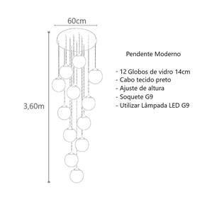 O produto inclui 1 pendente preto fosco e 12 globos de vidro.