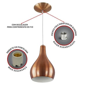 O charme e a inovação dentro de seu ambiente, produto produzido todo em alumínio desde a canopla até o prensa fio, este com ajuste de altura para maior comodidade e modernidade de seu ambiente, soquete em porcelana, tudo para que seu produto tenha mais qualidade, segurança e vida prolongada, não utilizamos nada em plástico para maior durabilidade e sem risco de possíveis curtos.