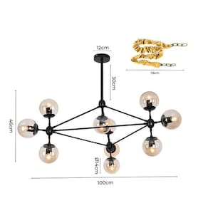 Pendente nordecor jabuticaba 14cm - preto ll3001b - bocal: 10E27 - ip20 - Lustre jabuticaba preto 10xe27 biv nordecor ll3001b família: pendente fabricante: nordecor referência: ll3001b origem: importado fonte de iluminação: lâmpada quantidade de lâmpadas: 10 lâmpada indicada: led filamento soquete: e27 Tensão: bivolt posição: sobrepor no a teto ambiente: interno dimensões cm : c 100 x l 93 x a 43 tamaho do cabo cm : 150 cor: Alumínio preto e vidro âmbar material: alumínio e vidro esse pendente é pendurado por uma haste preta de 30cm fixada na peça e por uma corrente com cobertura de tecido preta de 1,2m que conecta a haste à canopla de teto. Lâmpada não inclusa