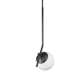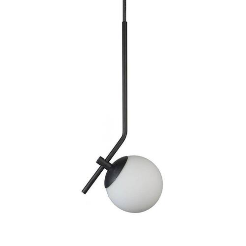 Pendente On Ly Preto Com Globo Esfera De Vidro Branco Lustre Pendente ON LY, design minimalista ao seu estilo. Descrição Técnica: - Modelo: On Ly - Acabamento: Pintura Térmica - Material: Aluminio e vidro - Tamanho (LxA): 16 cm x 38 cm - Globo: 12cm - Cabo: 70 cm (regulável) - Soquete: Padrão G9 - Bivolt: Sim - Canopla: 12 cm