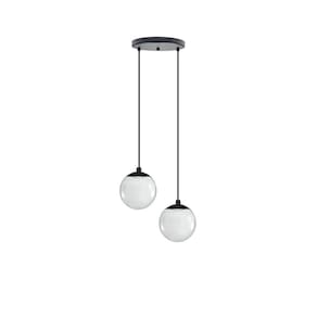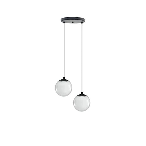 Fabricado em alumínio de alta qualidade, o Pendente Moderno Preto possui dois globos de vidro com 13,5cm de diâmetro cada. O cabo em tecido preto ajustável permite que você posicione o pendente na altura desejada durante a instalação, que pode variar entre 1,25m e 1,50m.