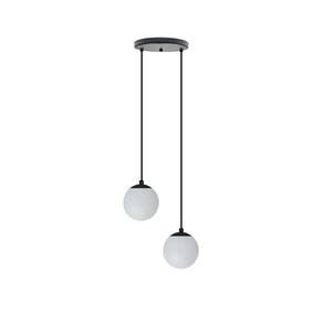 Este pendente é feito de alumínio de alta qualidade, garantindo durabilidade e resistência. Possui dois globos de vidro com 13,5cm de diâmetro, proporcionando uma iluminação suave e agradável. O cabo em tecido preto é ajustável na instalação, podendo variar entre 1,25m e 1,50m de altura.