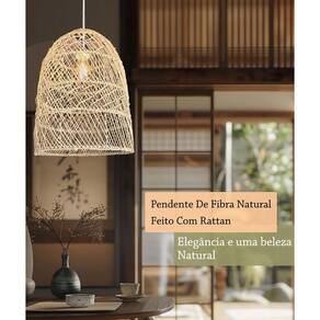 Pendente Rattan Em Fibra Natural Vime Bancada Sala E27 Nat72