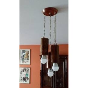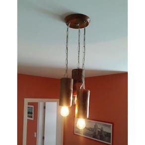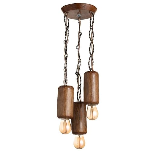 - 3 Pendentes modelo Rústico na mesma canopla; - Produto de madeira maciça. - Garantia de 3 meses contra defeitos de fabricação; - Pronto para instalar; - Encaixa a lâmpada que desejar - Soquete: E-27; - Lâmpada não inclusa.