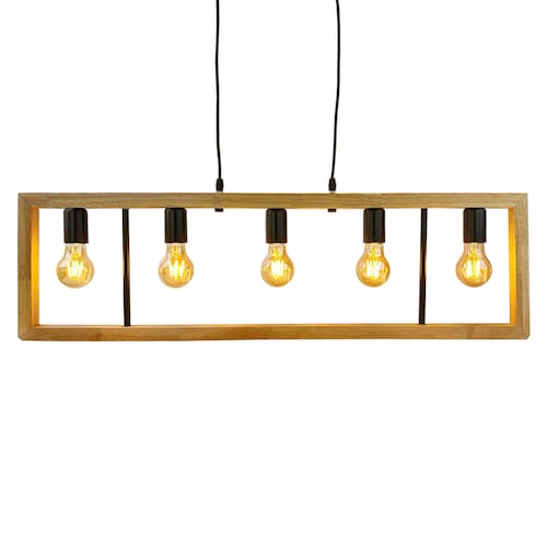 Com design marcante e acabamento natural, o pendente rústico retangular une o charme da madeira com a modernidade do metal. Ideal para quem busca uma iluminação acolhedora e sofisticada, é perfeito para salas de jantar, cozinhas gourmet e ambientes com estilo industrial ou contemporâneo. Suas cinco lâmpadas E27 proporcionam uma iluminação ampla e agradável.