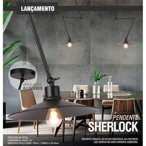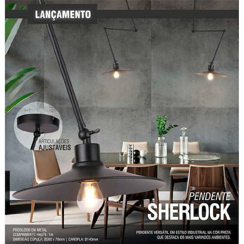 Pendente sherlock preto Cor: preto Tamanho: m Pendente sherlock O pendente sherlock taschibra, produzido em metal, é uma ótima opção como artigo de decoração em seu ambiente. Especificações técnicas: Soquete: 1xe27 Potência máxima 40w Material: metal Comprimento da haste: 1 m Dimenções lxa : 260 x 70mm Canopla: 140mm Atenção, imagens meramente ilustrativas: - não nos responsabilizamos por montagens e instalações mau realizadas. Certifique-se que de que algum eletricista faça a montagem e instalação do produto de forma correta. - o produto pode sofrer pequenas alterações de cores. Os demais itens e objetos de decoração nas imagens, não acompanham o produto. - os preços, parcelamento, promoções e condições de entrega, são válidos somente para compra através do site e não para nossa loja física. - lâmpadas não inclusa. - favor conferir mercadoria no ato do recebimento. Marca: Não Informado