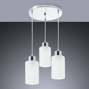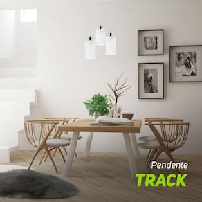 PENDENTE TRACK 3 LÂMPADASPendente em vidro moderno e delicado, que decora o ambiente com muito charme eEstilo.Possui detalhes em linhas desenhadas no vidro que lhe agregam um visual decorativoE super atual.Com possibilidade de regulagem de altura, o que lhe permite ajustar o pendente deAcordo com sua necessidade.Ficha técnica- Tipo de soquete: E27- Ambientes: Interior- Inclui lâmpada: Não- Lugares de montagem: Teto- Unidades por pacote: 1- Cor principal: Branco- Capacidade de lâmpadas: 3- cor: branco