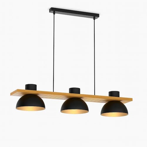 Pendente triplo moderno em madeira e metal preto 90cm Pendente moderno triplo em madeira e metal - design sofisticado para sala de jantar e cozinha Não acompanha as lâmpadas Transforme seu ambiente com este lustre pendente moderno, que une design elegante e iluminação funcional. Com acabamento em metal preto fosco e detalhe em madeira natural, ele traz um toque contemporâneo e aconchegante para sua casa. Características: Estrutura em madeira de alta qualidade e cúpulas metálicas Altura ajustável até 1,20m Largura total: 90cm Compatível com lâmpadas e27 não inclusas Ideal para mesas de jantar, cozinhas, bares e ambientes sofisticados destaques: Estilo minimalista e moderno Iluminação direcionada e aconchegante Combinação perfeita de preto e madeira para decoração contemporânea Perfeito para quem busca elegância, funcionalidade e um toque de sofisticação no ambiente. O produto é novo Sim, todos os produtos são novos. Caso o produto não supra minha necessidade posso devolver ou trocar O produto tem Sim, todos os produtos têm . Se ainda houver alguma dúvida estamos a disposição para responder de segunda-feira a sexta-feira das 08:00 às 17:30. Marca: Não Informado Ean: 7796054855521